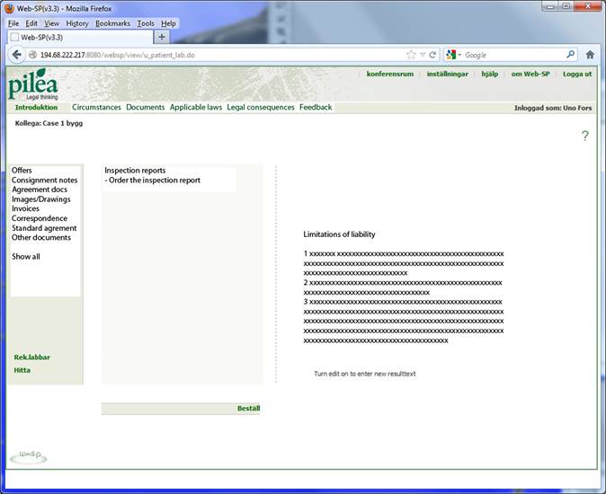 However, some minor issues were more or less impossible to solve like that all cases are introduced by indicating the age of the case (relevant in medicine, but not in law). Other remaining issues were related to Web-SP's focus on medical labs and imaging tests, but that could also be used for ordering legal documents, even if not optimal.