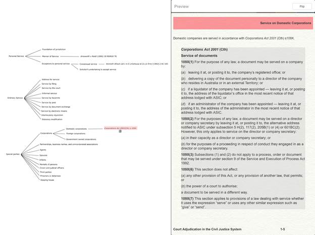 Digital flashcard networks may exhibit several degrees of complexity. In their simplest form they represent hyper-texted linkages between cards within or between card packs. Examples of this include simple flipping of cards and linear sequenced links between cards. More complex forms include concept maps for overall topic orientation combined with packs of cards related to the selected topic - See Fig 5 and 6. Cards may also have links across different packs, where concepts have interconnections between different areas of the law.