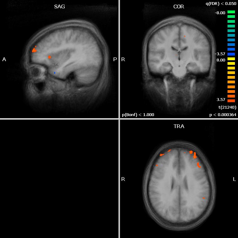 The third strand of this project is supervised by Professor Hans Markowitsch of the University of Bielefeld in Germany. His task is to identify the neural correlates of accurate versus inaccurate remembering (and monitoring and control) using functional magnetic resonance imaging ("fMRI"). MRI scans (without the "f") are commonly performed in hospitals for medical purposes, for which patients are subjected to a "passive" scan (they just lie still while the scan takes place). The functional, fMRI procedure used in neurocognitive research, however, is rather different. While under the scanner, participants may be shown texts on a small computer screen and asked to respond to questions using a special response pad with a small number of buttons. These buttons allow the participants to provide simple responses such as 'yes', 'no', or "maybe'. More complicated manual or verbal responses are precluded because these would produce too much "noise" in the brain activation patterns that are being measured. The basic goal is to identify which parts of the person's brain are active during different types of cognitive tasks [22] (e.g., retrieving information from memory, monitoring the correctness of the information, deciding whether to venture an answer or not) and also to determine if different levels of success in these tasks are marked by particular patterns of activation, averaged across participants.