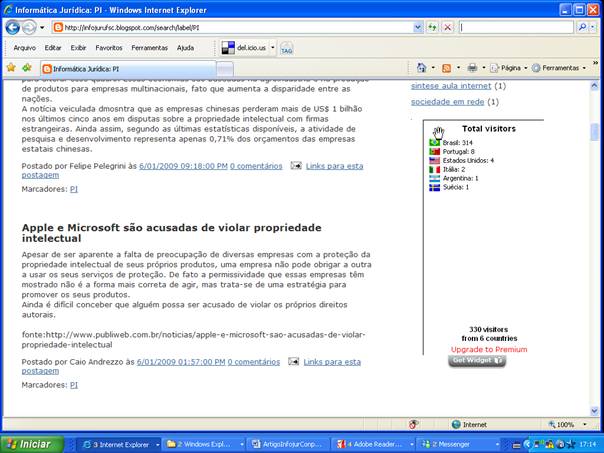 Make the blog available to external readers allowed people outside the academic environment and which are interested in law and informatics topics, found the blog and addressing what had been written on the blog by the students and make comments about. The blog became a repository of law and informatics information issues, with global visibility, as attested to the gadget that tells you that country in the world are the users, in Figure 3.