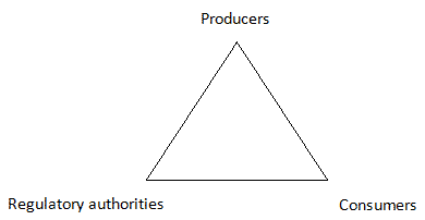 With this discussion in mind one can draw a triangle depicting responsibilities carried by the three types of actors.