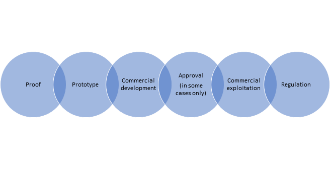 What can be learned from this? We can see that the interaction of regulation with the development and deployment cycle of disruptive technology can follow the two paths identified above. Either: (1) proof; (2) prototype; (3) commercial development (4) approval; (5) commercial exploitation; and (6) regulation and control OR (1) proof; (2) prototype; (3) commercial development (4) commercial exploitation; and (5) regulation and control.